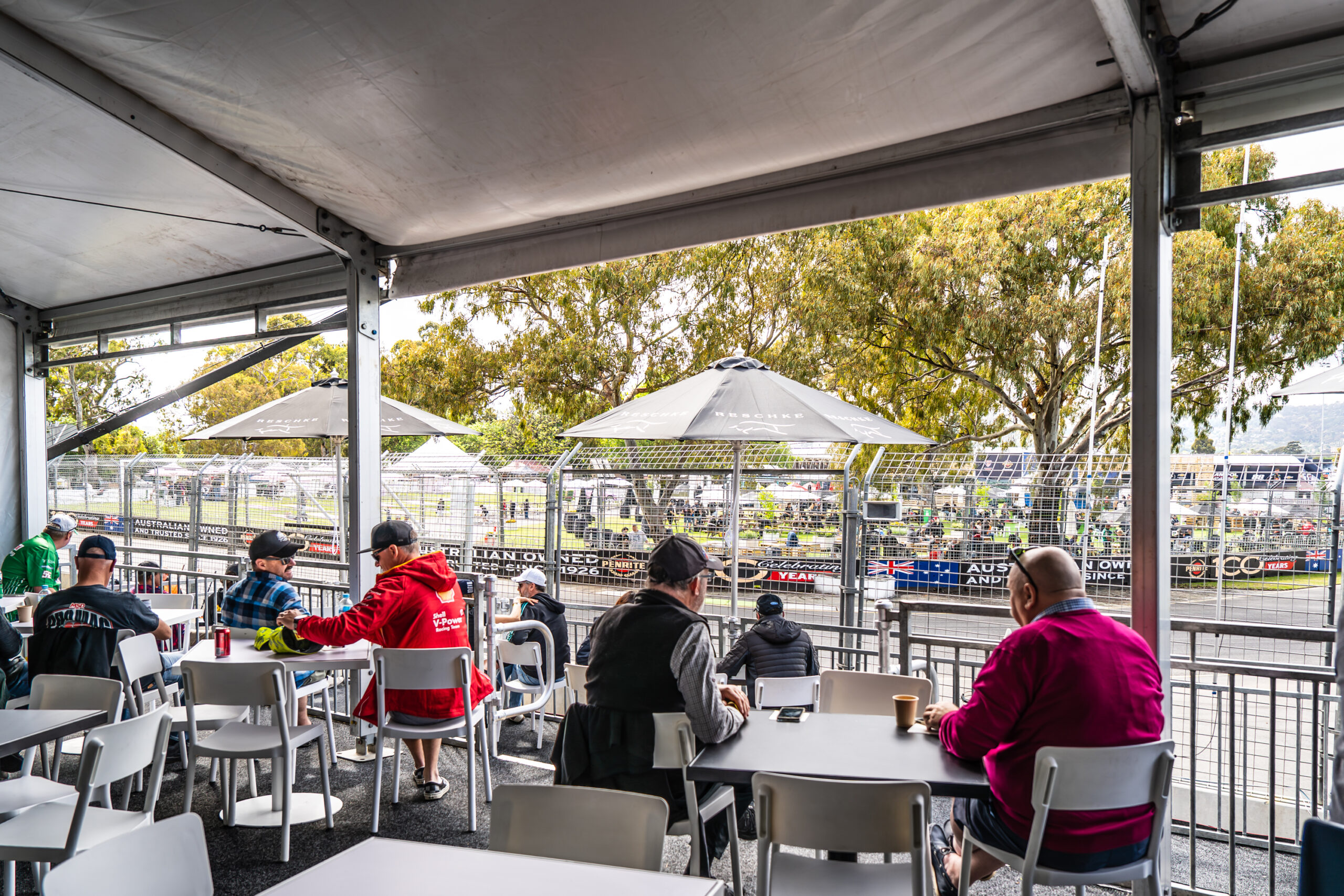 In 2026 Platform 10 and Turn 11 Trackside join to become one precinct! Be treated to a full-day buffet menu including morning and afternoon tea on the shaded open-air balcony or undercover in the main pavilion. Follow the TV telecast and timing screens in the facility or look across the track to the Superscreen.